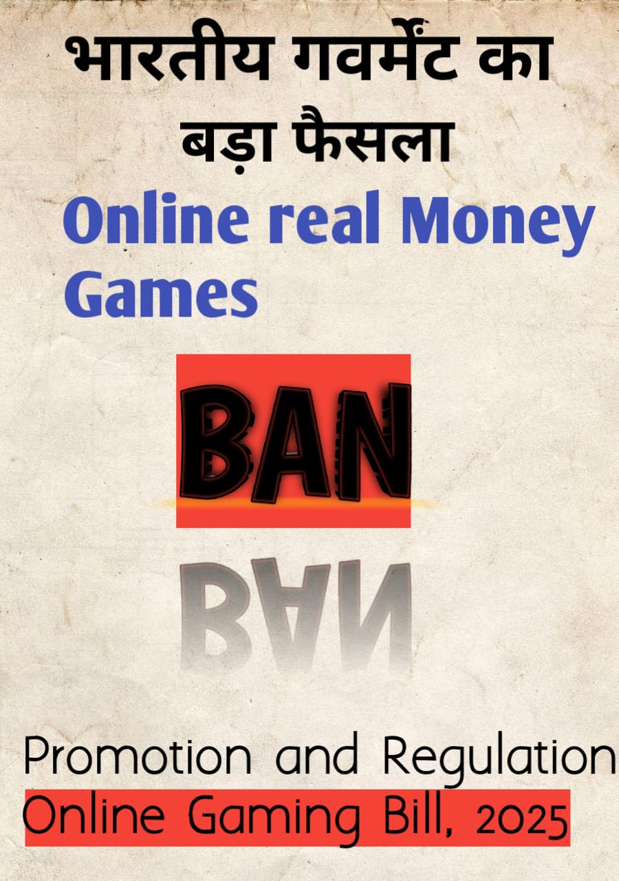 जब भारत की गवर्नमेंट ने ऑनलाइन रियल मनी गेम को बैन किया तो इसकी खबर को सुनकर सोशल मीडिया और आम जनता में दुख का सैलाब आ गया लेकिन भारत सरकार का यह फैसला बहुत ही कड़ा और ऐतिहासिक होगा और यह गेम जनता के लिए नुकसान देता गवर्नमेंट ने इस बहन करके लोगों को बुरी लत आत्महत्या परिवार बर्बादी जैसी समस्याओं से मुक्ति दिलाई है और वहीं दूसरी तरफ करोड़ इन्वेस्ट और कंपनियों का सारा पैसा और मेहनत नष्ट हो जाएगी क्या यह डिजिटल इंटरनेट और इंडस्ट्री को लाभदायक होगा या हानिकारक इसका परिणाम हम आगे देखेंगे|